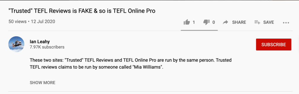 Interestingly, this affiliate marketer spread misinformation about TEFL Online Pro a few years ago.